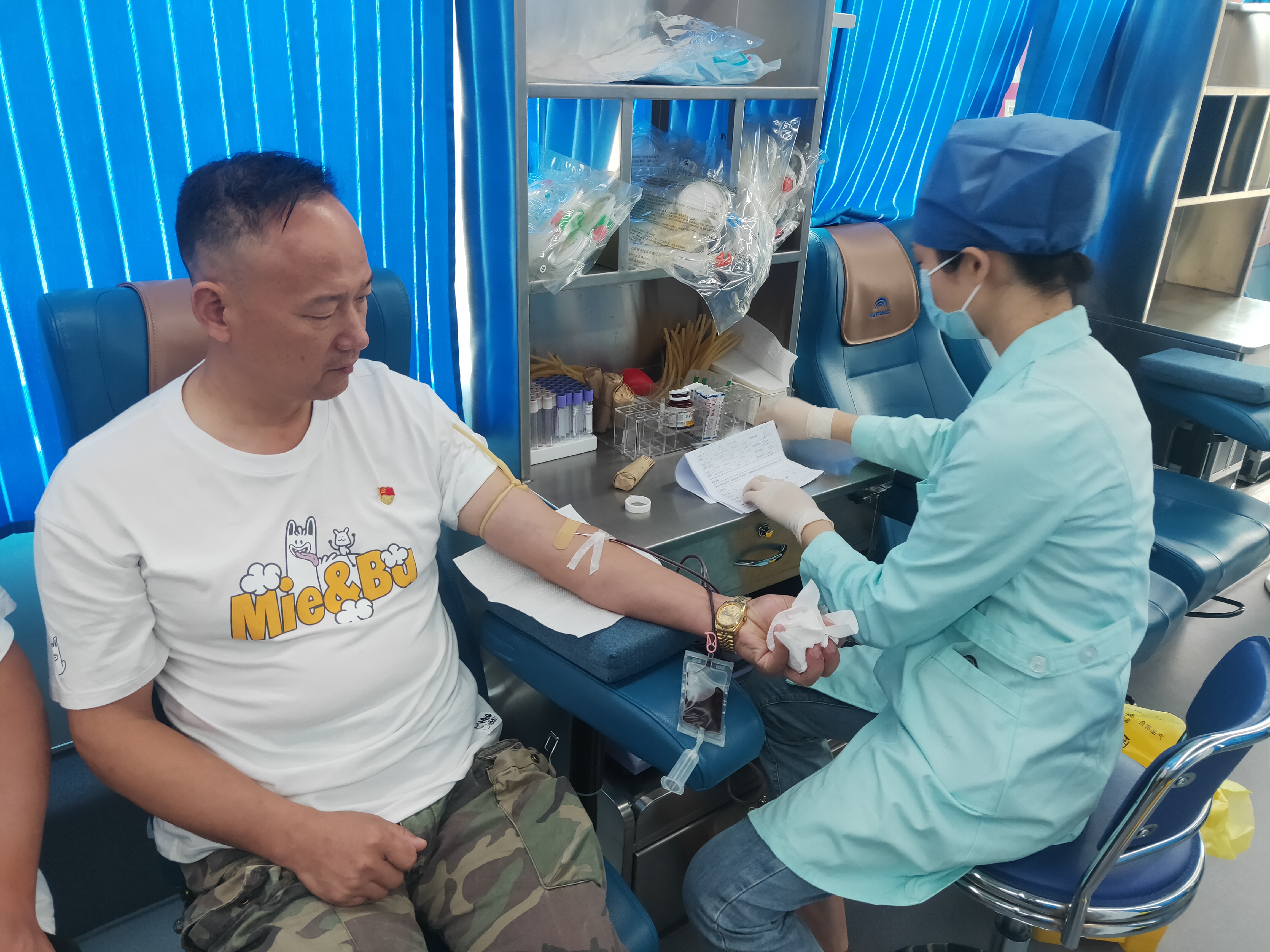 在獻血隊伍中,有不少黨員已多次參加獻血活動。“我幾乎每年都會獻血,這次獻了400毫升。作為一名共產黨員,積極響應為民辦實事的號召,能夠幫助到他人,我感到非常開心。”江南污水處理廠黨支部書記、廠長何振說道。