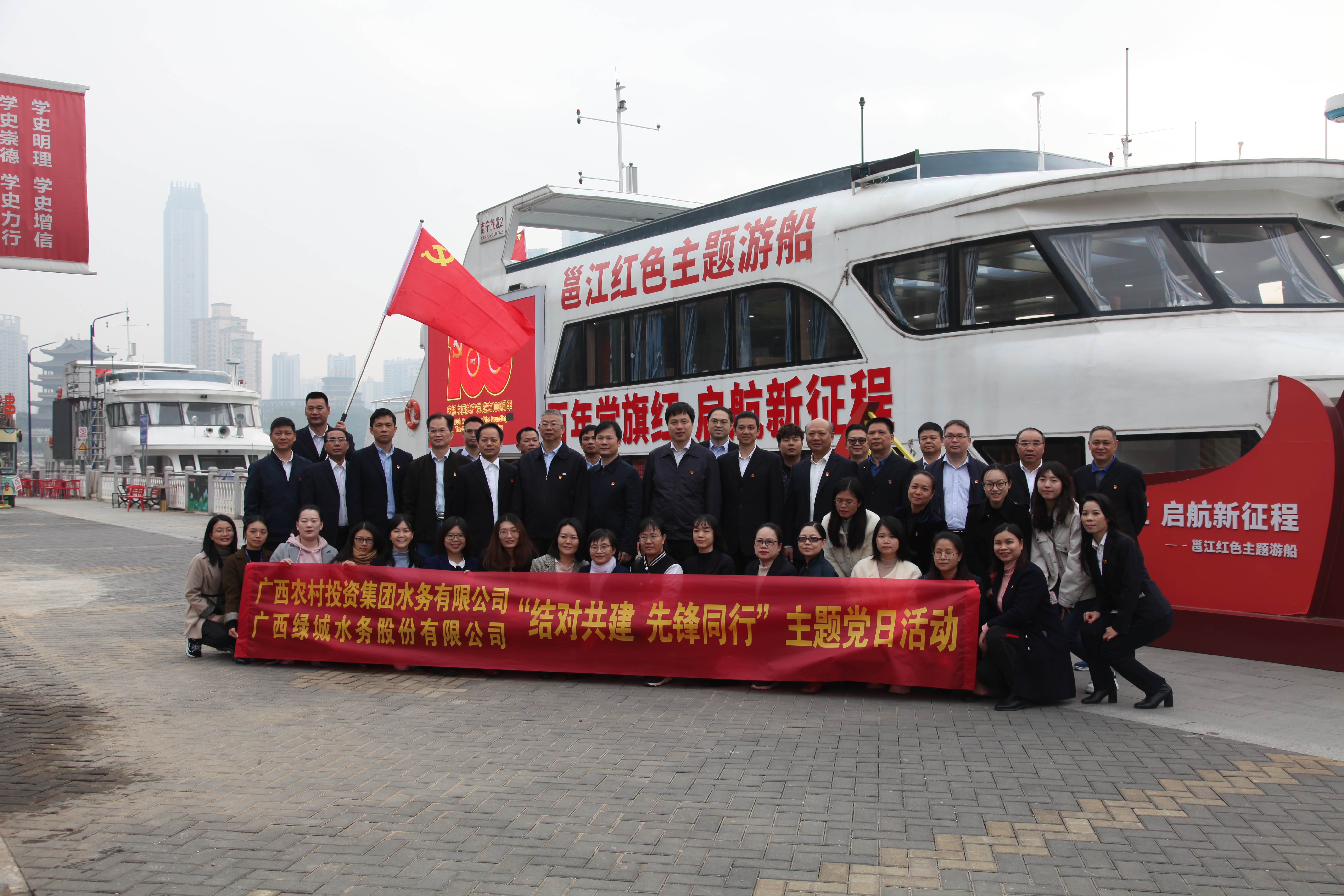 一百年前,中國共產(chǎn)黨在嘉興南湖的“紅船”上誕生。一百年后,為深入學(xué)習(xí)黨的百年奮斗歷程,開啟水務(wù)企業(yè)共建共謀、共治共享的新篇章,12月15日,廣西綠城水務(wù)股份有限公司第一黨支部和廣西農(nóng)村投資集團(tuán)水務(wù)有限公司第一、第二黨支部以聯(lián)合共建的方式,在邕江紅色主題游船上開展“結(jié)對共建 先鋒同行”主題黨日活動。廣西農(nóng)投集團(tuán)副總經(jīng)理陳遠(yuǎn)程、南寧建寧水務(wù)集團(tuán)總會計師陳大任、農(nóng)投集團(tuán)和農(nóng)投水務(wù)公司、農(nóng)投鄉(xiāng)村建設(shè)公司、綠城水務(wù)公司的領(lǐng)導(dǎo)班子成員也以普通黨員的身份參加了本次活動。