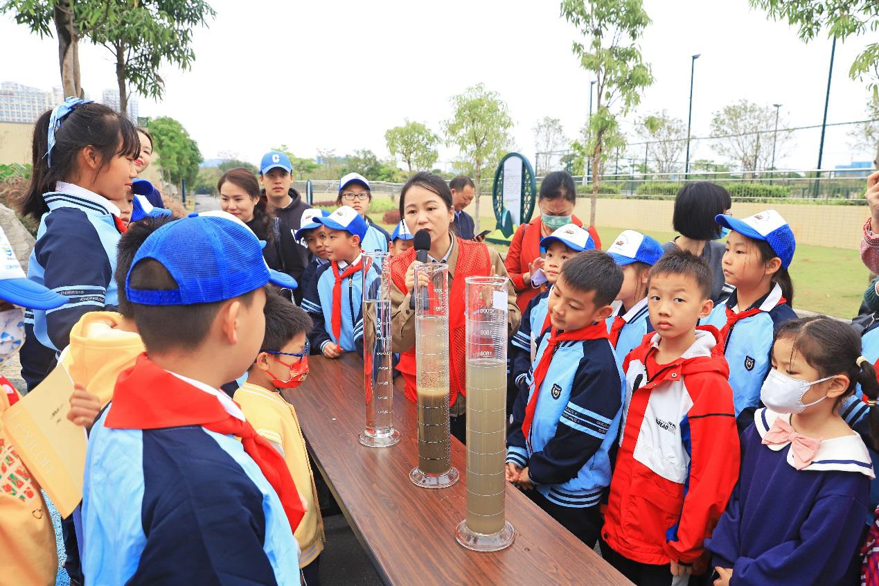 在水科普館,孩子們與講解員一起參與了水科學小實驗,通過親自動手操作凈水科學實驗,更直觀地感受到“干凈水”的由來。在垃圾分類宣傳陣地,孩子們利用陣地中的道具開展垃圾分類競賽游戲,在歡聲笑語中加深了對垃圾分類的認識。