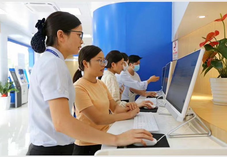 工作人員正在指導市民網上辦理用水相關業務 大大縮短了辦理時間